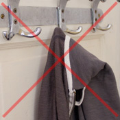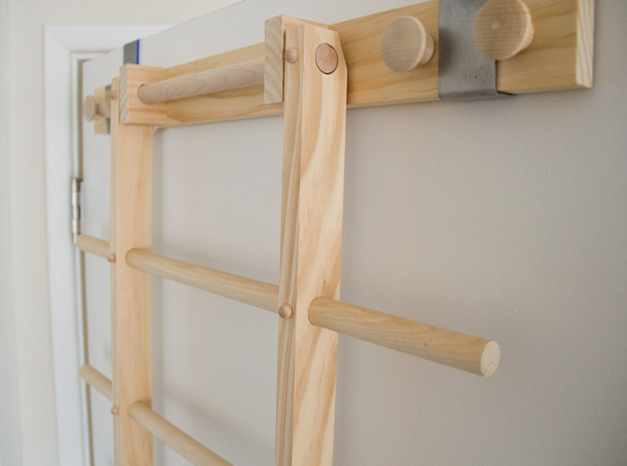 Zipladder has soft rubber pads on the back and bottom to keep it in place and avoid scratching walls or floors. The rod ends and hooks are also designed to avoid damaging delicate clothes. The door hanging hooks are padded as well. |