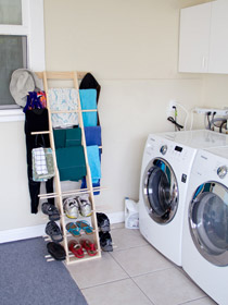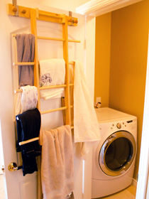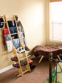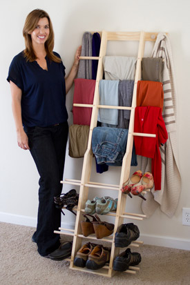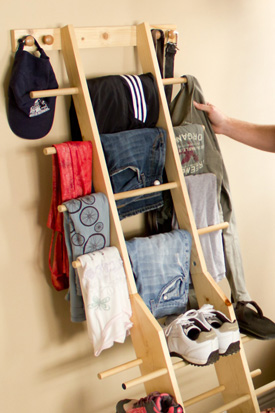 Zipladder has 12 rung areas to drape clothes over plus 12 clothes hooks.