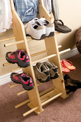 Zipladder holds 8 to 12 pairs of shoes (depending on shoe width).
